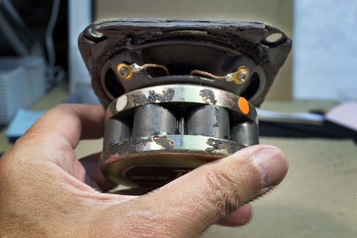 На картинке это не очень бросается в глаза, но если отстучать диффузор по радиусу, то... эх... слушаем, чё уж там болтать...