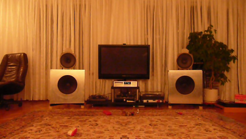 Работа по проекту продолжается.Головки смонтировал на стойки, включил в паралель без фильтров и кондеров.Звук обнадеживающий:),бас естествено в зачаточном состоянии.После установки экрана 60х60см на НЧ бас появился и то очень вкусненький , чтото что мне очень близко по подаче.Очень понравилось на минимальной громкости.Думаю что если добавить площади с басом проблем не будет.Все еще думаю как это сделать максимально эфективно и так чтобы не попросили б,стро убрать "ЭТО" из хола :D .Интересная идея озвучена в теме Щит - всему голова.А если сделать двери(уши 30+30 см+60см экран=120см) с левой и правой стороны плоского экрана, и держать их закрытыми(перпендикулярно задней стороны экрана) пока неслушаем музыку, включаем музыку разворачиваем двери.Вот только реализация узла крепления озадачивает, нужно придумать как двери фиксировать(и чтоб все это не дребезжало), как обустроить неизбежно появляющуюся щель.