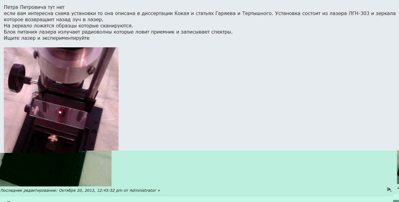 С помощью вот такой установки, они фиксируют голограмму ДНК, но я это написал не как повод ознакомиться с этим направлением, а как повод ознакомиться с тем с помощью чего они фиксируют изменения.