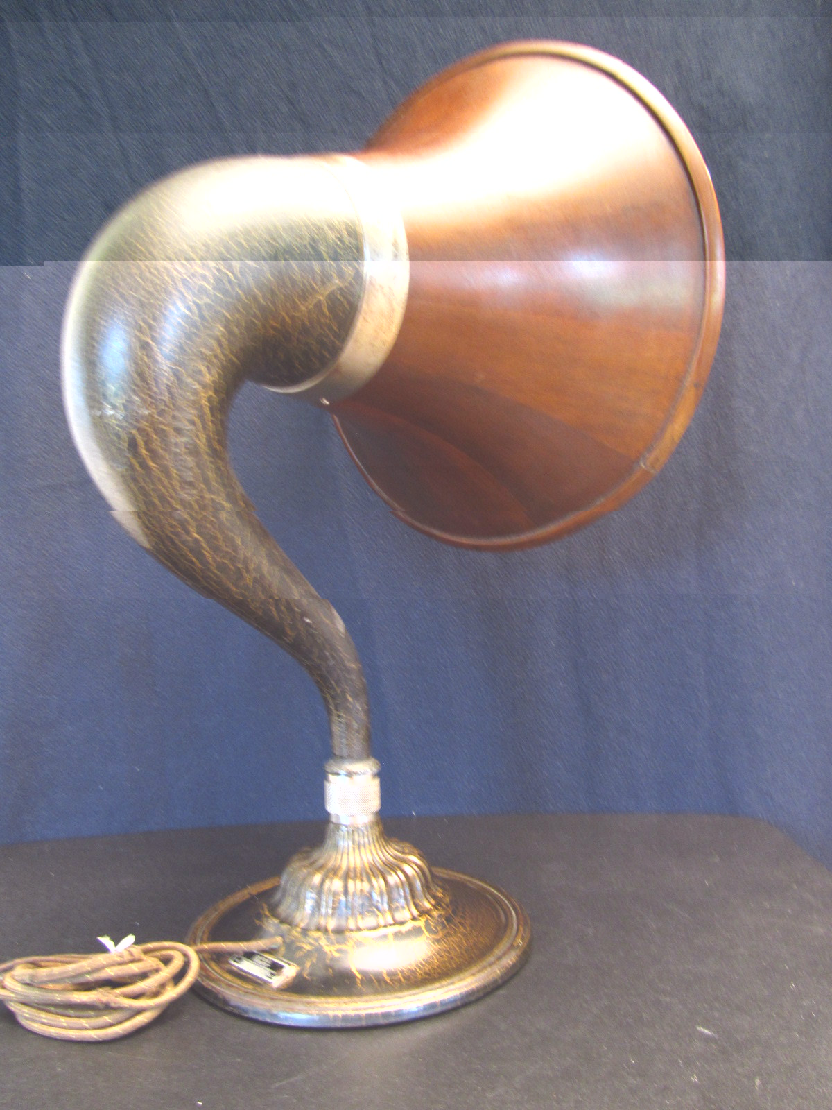 VINTAGE OLD 1920s GOLD VEIN GOOSE NECK MAHOGANY WOOD BELL ANTIQUE RADIO SPEAKER