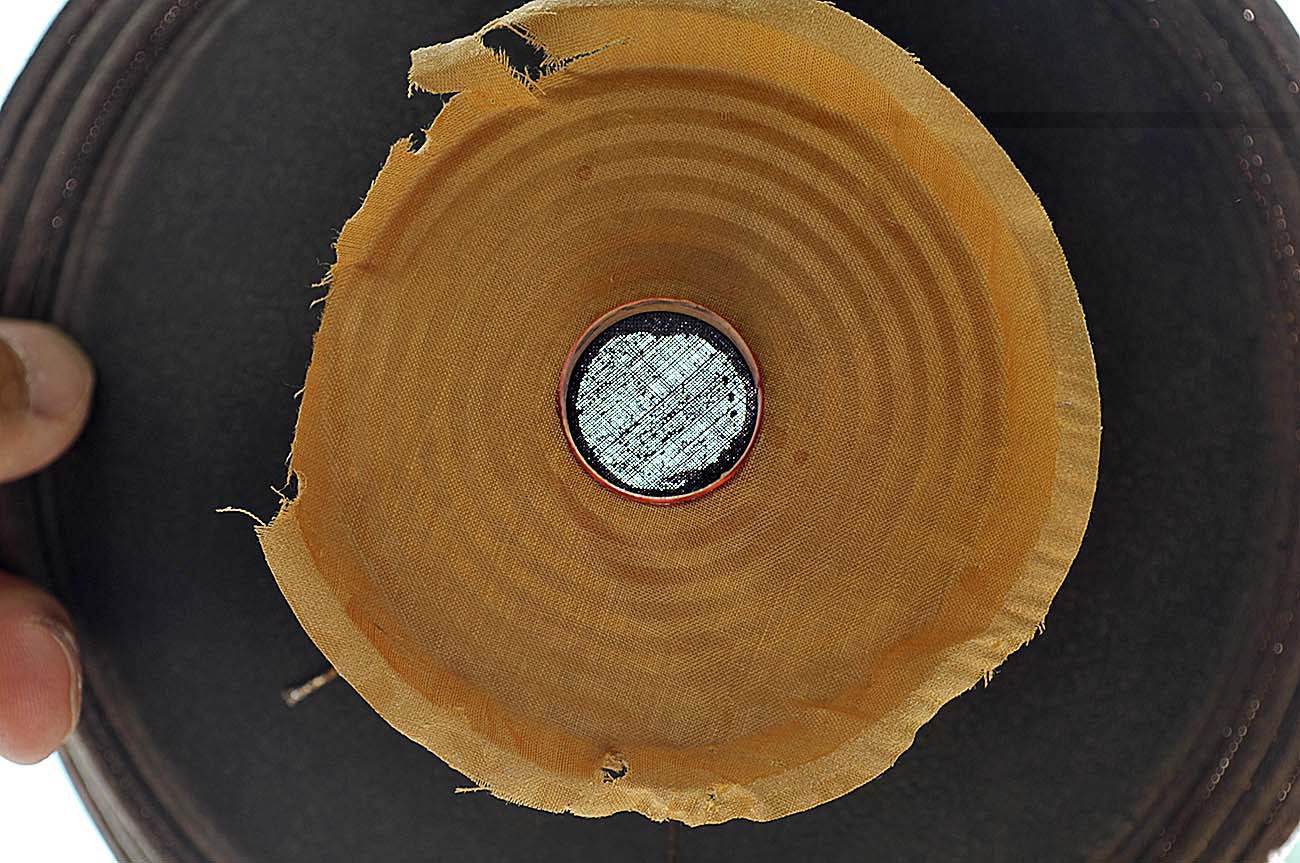 Центровочная шайба у "Синусов" отштампована из обыкновенной ткани, безо всякой особой пропитки или бакелизации. Так, что при механическом вскрытии она почти полностью теряет форму. Кроме того, что замечательно, шайба эта вклеена напосредственно в щель между катушкой и диффузором. Так что выдирать ее приходилось "с мясом"...