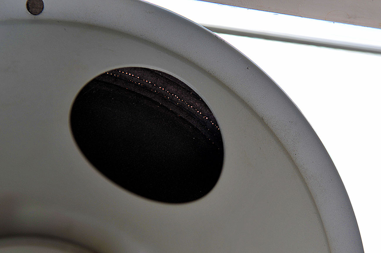 Ну и, наконец, прекрасно решен вопрос верхней накладки. Она сделана из полоски паралона , но полоска эта посажена на клей только по дальней от диффузора кромке. Своей передней кромкой она, получается, лишь чуть-чуть прикрывает верхнюю площадку диффузора.