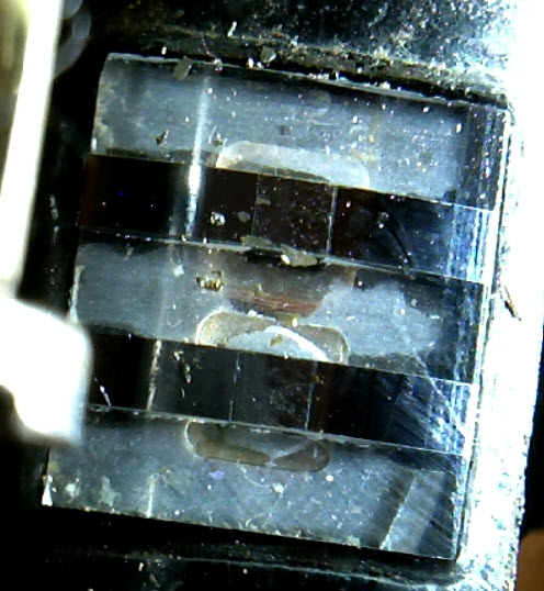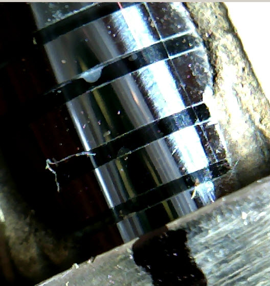 С помощью микроскопа, были сделаны фотографии рабочих сторон, всех трёх головок.Мне неизвестно, сколько часов отработали головки.Судя по фотографиям, состояние головок удовлетворительное.Самое странное, на фотографиях не видно рабочего зазора ГЗ и ГВ.Почему?Для того, что бы можно было ориентироваться при рассмотрении головок через микроскоп, где искать зазор, напротив его предполагаемого место расположения. черным маркером, на корпусе головок была нанесена метка.