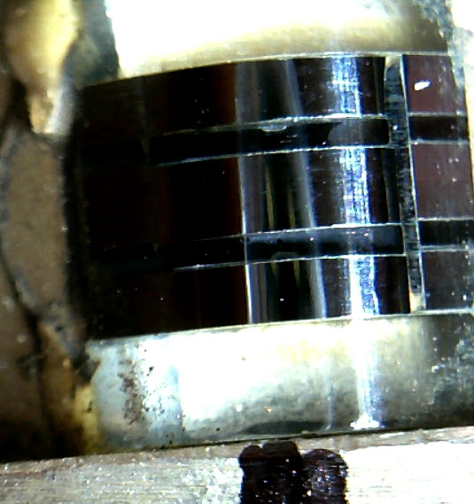 Рассмотреть зазор трудно, надо ловить блик под лампой. Микроскоп неудобен,