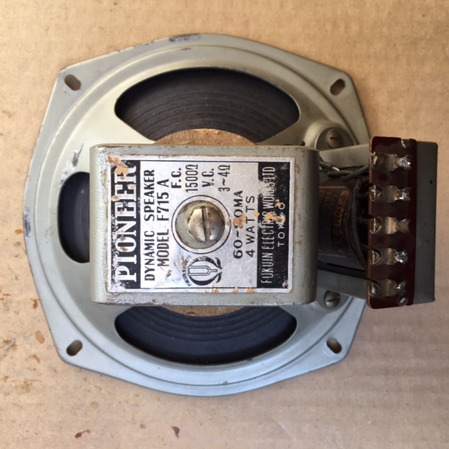 Здесь правильнее было бы сказать, о чужой коллекции. Динамик, о котором пойдет речь, Миша Ураков дал мне послушать. И я не утерпел. Решил написать о нем. Динамик называется Pioneer, model F715A, Fukuin Electric Works Tokyo. Я, грешным делом, совсем мало знаю о динамиках Японии 50-х, 60-х годов прошлого века. А там есть, что послушать! Японцы отличаются от нас физиологическими особенностями строения уха. Поэтому к их звуку нужно немного привыкнуть. Зато по степени тщательности изготовления и понимания базовых принципов звуковоспроизведения они кому хочешь фору дадут не задумываясь. Вот и эта "малютка" в 6.5" играет захватывающе! Способность японцев сбалансировать звучание маленьких излучателей просто великолепна! Конечно, динамик таких размеров не может быть самодостаточным в силу физики. Но то, что он играет по всему диапазону, вполне может стать основой для построения любой сколь угодно сложной системы. Это просто "мистификасьён" какой-то на подмагничивании, ей'бо! Слушаем...