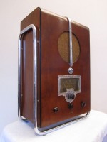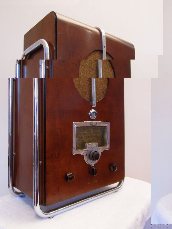 VINTAGE 1930s JOHN VASSOS RCA VICTOR CHROME TRIM ART DECO 40 POUND TABLE RADIO.