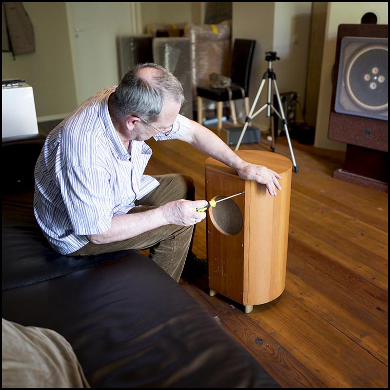 Тут нужно сразу сказать, что японские представления о "ручной работе" диаметрально противоположны нашим. Если у нас это чаще всего "тяп-ляп" в гараже, чтоб только идею проверить, а иногда и просто потому, что "сойдет и так", то у японцев "hand made" - высшее проявление творчества. Это затратно. Это бескомпромиссно. Это "лицо", которое потерять нельзя. Лучше умереть. Потому и продукция мелких лабораторий или, например, владельцев кафешек, которые "точат" звук, как ювелирку, порой стоит куда дороже маститых производителей. И зачастую поделом. Вот и здесь, кто делал, когда - не ясно. Внутри стоят 755а Альтеки (лучшее, что есть в широкополосной нише). Правда, здесь они - с самодельными подвесами на замше. Сама туба кабинета свернута из цельного куска звучащего шпона. Внутри еще одна вставка из шпона же с вырезанными эфами. Лицевой "срез" сделан из тонкой дощечки. Все сделано внатяг. Все звучит, как дека у струнных. А сам динамик прикрыт грилем из плотной ткани. Так, что основной звук идет не наружу, а внутрь. И звучит-излучает весь кабинет. Колонки реально играют! И, ах, господа, это прекрасно! Я не скажу, конечно, что барабаны на них слушать - одно удовольствие. Попердывают. Но вокала я такого не слышал вообще никогда и нигде. Это феноменально! Голоса просто лучатся из воздуха... Запись, к сожалению... Но и она дает понять, что звук совершенно необычный. Так что, спасибо неведомому рукодельцу из далёка... Я такого кайфа давно не испытывал!