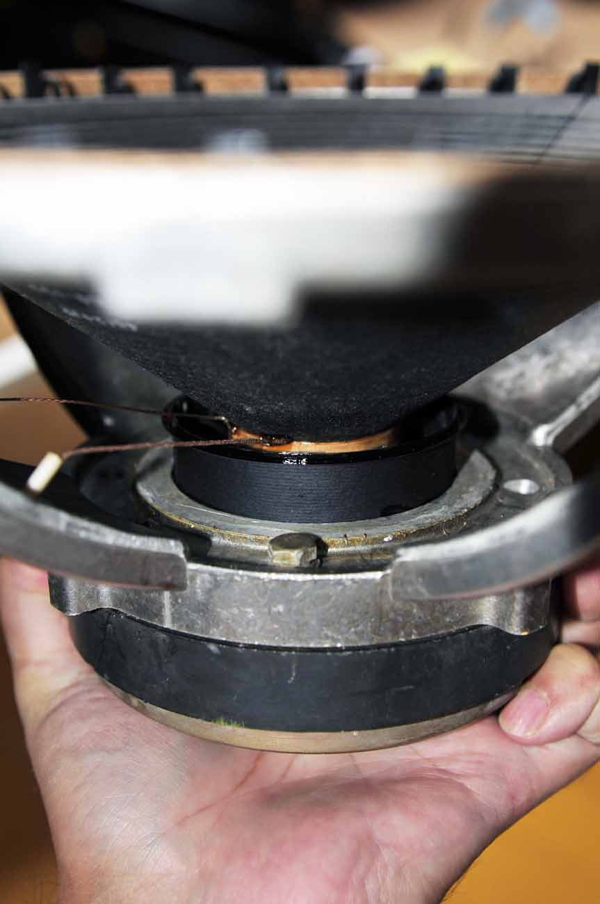 И по этому же принципу сделан верхний подвес. Тот же подшипник. Принципиальное отличие от предыдущих версий пушпульных приключений заключается в равномерности движения и, что много важней, на самом деле, - в равномерности затухания движения диффузора. И это очень слышится при подаче звука.
