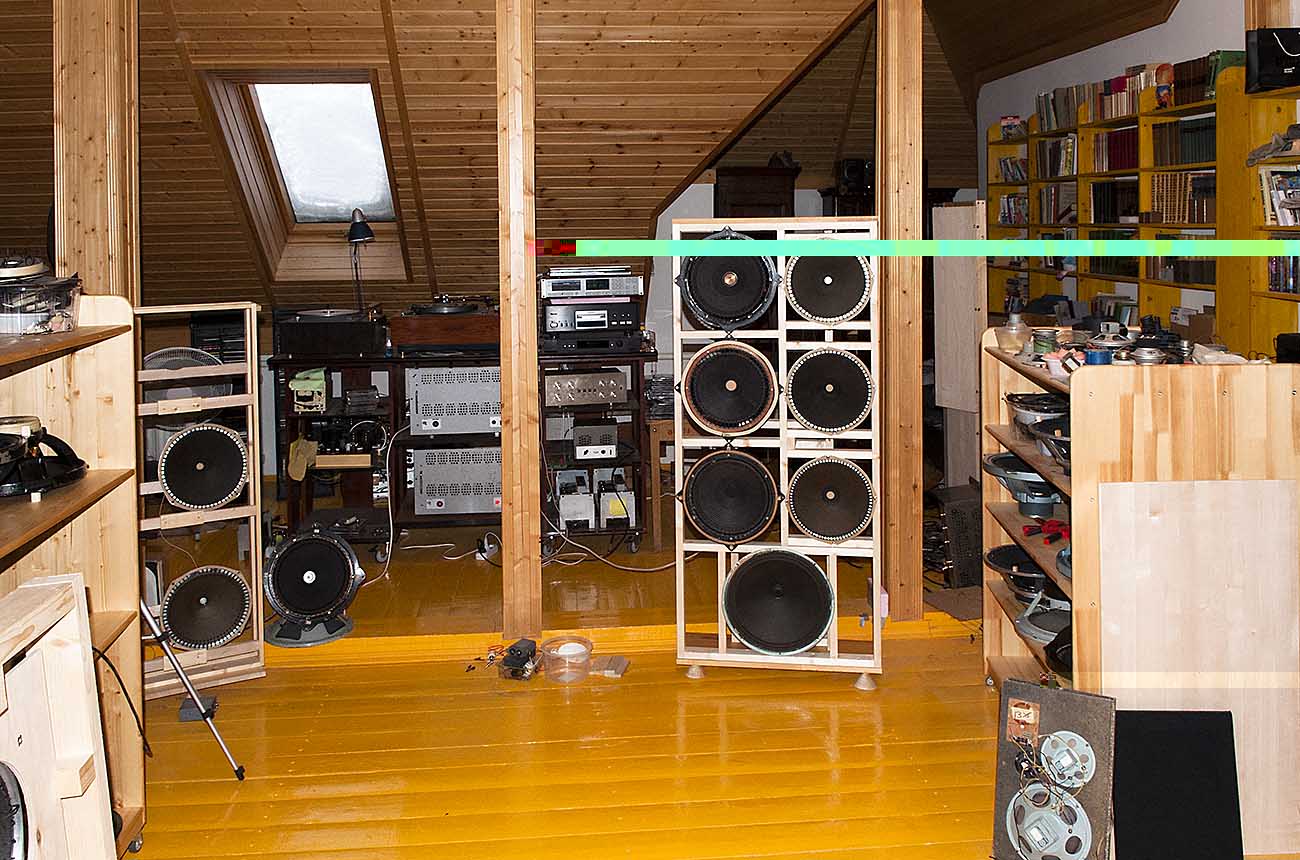 Занимаясь настройкой своей большой системы, а это, видимо, у меня уже пожизненное занятие, я обратил внимание на то, как сильно меняется звук при увеличении количества одновременно включенных динамиков. Вначале для описания этих перемен я стал использовать свой доморощенный термин "твердость звука", никому его, впрочем, не навязывая. Впоследствии, читая книгу князя А.Волконского (http://soundup.ru/index.php?option=com_ ... &Itemid=64), я набрел на абзац, который показался мне замечательно точным по наблюдению:"- Я когда-то сравнил одноголосие и многоголосие таким образом, - писал Волконский. - Одноголосие – это «оно», а многоголосие – это «мы». Одноголосие – это когда много людей поют в унисон. Унисон имеет свою толщину(выделено мною.-Е.К). Если сыграть один звук на одной скрипке, он прозвучит иначе, чем если бы его сыграли шестнадцать скрипок. Появляется толщина, потому что все немного по-разному играют. " И я с удовольствием сменил для себя доморощенную "твердость" на княжескую "толщину" звука. Кроме того, я обнаружил, что подобная толщина звука вполне может служить акустической опорой для формирования свободного, не связанного рамками акустического кабинета, баса. Баса быстрого, глубокого и живого, безо всякой глины и бочковых призвуков. Почти все слушатели моей системы, однако, задавали мне неизменный вопрос, можно ли повторить такой звук на меньшем объеме источников. Проще говоря, можно ли сделать колонки, способные играть на том же уровне, что и большая система? Эти вопросы, в конце концов, навели меня на мысль поставить эксперимент по поиску минимального количества динамиков, при одновременном включении которых акустическая опора звука начинает проявлять себя. По случаю мне удалось купить задешево с десяток двенашек Магнавоксов, которые и стали фундаментов эксперимента. Потихоньку перевожу их на пушпул и формирую из них и из наработанных ранее 4А32 звучащий объем. На этой ветке буду знакомить всех заинтересованных... с тем, что получится и получится ли что-то из этого занятия... Пока пробное включение части, завершенных динамиков. Записано на IPhone, так что слушаем не на гербовой, а на простой...