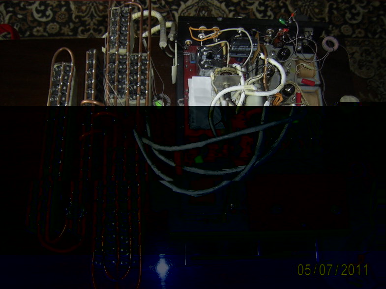 - слева батарея "быстрых" анодных конденсаторов (от вспышек) , соединённых медными шинами-трубками