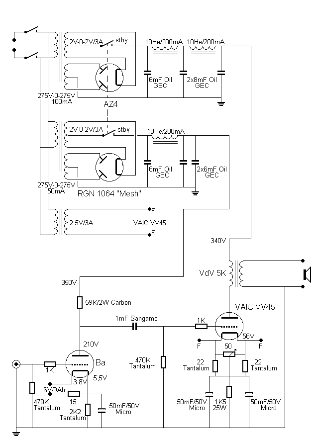 На нижней схеме, где каждая лампа через свой кенотрон, обратите внимание на то, что автор схемы делает упор не только на тип кенотрона, но на тип анода.