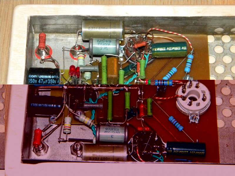 Никаких секретов. Тем более, что схемы не мои, моя только реализация. Авторы - А. Торрес и Е Комиссаров, соответственно. В сети они доступны свободно. Структурно они "близнецы", коррекция "в аноде входной лампы", непосредственная связь между каскадами. Наргузка выходного каскада первого варианта - резистивная, соответственно, конденсатор на выходе. Второй с трансформаторной нагрузкой выходного каскада.