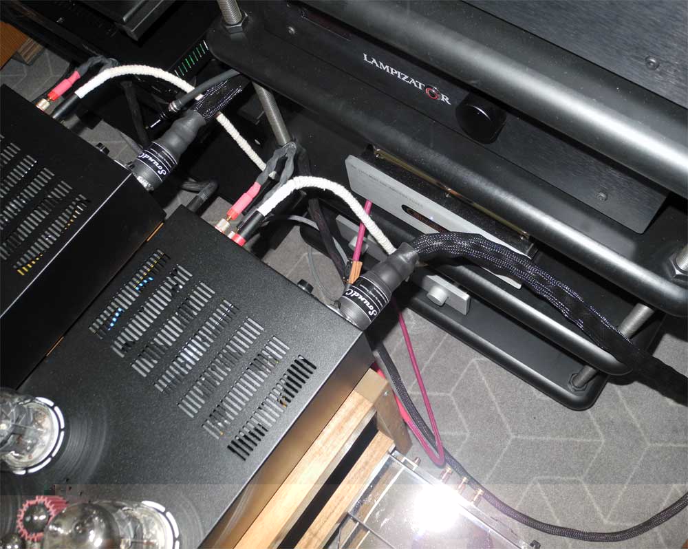 подключенную моими сетевыми кабелями SoundCable Ag-5s и межблочными SoundCable Cryo Gold (белого цвета)