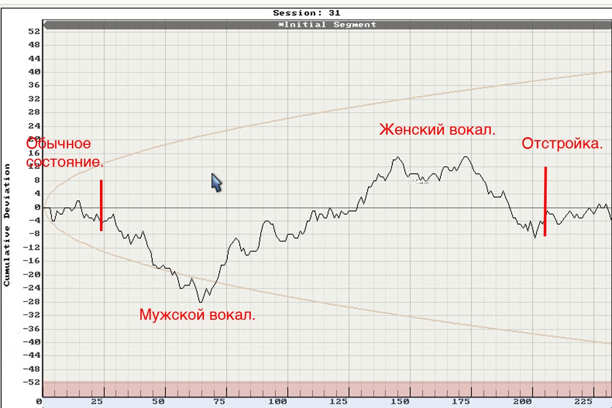 Проверил кабели на Псилероне. 1) Ментальный кабель. Записано мое состояние, потом включаю музыку и просто без своего вмешательства копирую состояние на датчик Псилерона, потом выключаю ролик, а датчик некоторое врем пишет.. 2) Штатный Efa кабель. Просто копирую и все. Фактический это мой фон, всплески - орал на собаку. Разительная разница. Напомню, вчера прописал на кабель настройку на оператора и сонастройку с автором-исполнителем. Смотрим. Разрешение у ЕФа существенно выше.