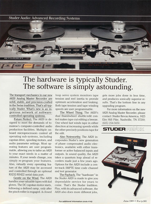 Был у одного человека,у него Штудеров стояло 5 шт.,правда на ходу только один,остальные в ремонте.Не успел послушать,заслушался EMT с его корректором и усилителем,коллосально,время и вышло.По его словам лента еще круче.Верю.Внушает.