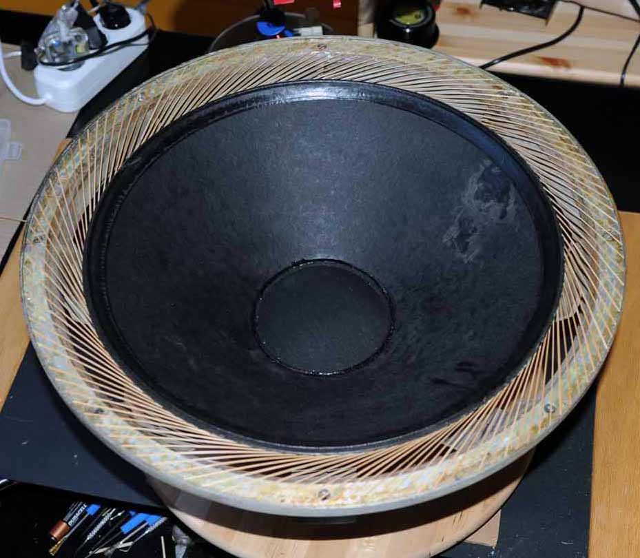 Ну, после такой аттестации, и подавно грех молчать. Говорю. Пришел большой "Генеральный Электрик". Покупал его по нескольким соображениям. Во-первых, в тупую, хотел послушать динамик этой немаленькой и почтенной компании. Ни разу у меня их как-то не было. Во-вторых, потому что отдавали задешево. В третьих, и, на самом деле, - в главных, потому что уж очень необычная у него конструкция. Он легчайший по весу. Тонкая штампованная корзина, невеликий магнит, катушка для 10-12 дюймовки (там старый американский нестандарт, так что точно и не скажешь) могла бы быть и побольше. А самое вкусное - материал диффузора. Видимо, у них тоже проблемы с товарными остатками, потому что материал такой ставили на древние якорные динамики. Он невероятно легкий и твердый при этом. Почти гетинакс, но бумага. Якорные динамики я люблю как раз за такие диффузоры. Они играют как-то... Суховато, но при этом не теряя жизни. Точно, но при этом не коробя слуха. Словом, эдакие сухопарые чопорные джентльмены, неспешно прогуливающиеся где-нибудь в Гайд-парке. С тростью. Все мои надежды сполна оправдались. Не динамик, а игрушка, честное слово... Такое количество эмоций от новых звуковых окрасок я уже давно не получал. Давно... P.S. И, заметьте, кромка корзины ничем не проклеена. Только точечные резиновые вставки под крепеж. Дорожили, умники, резонансами в старину...