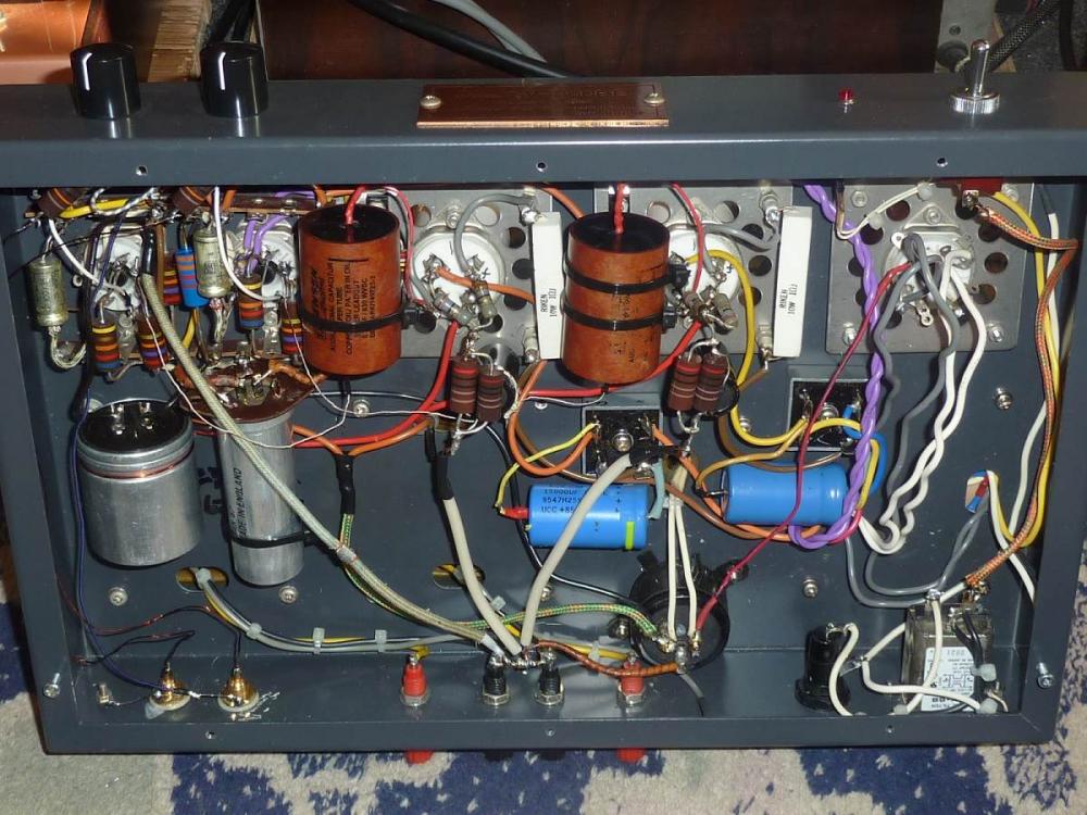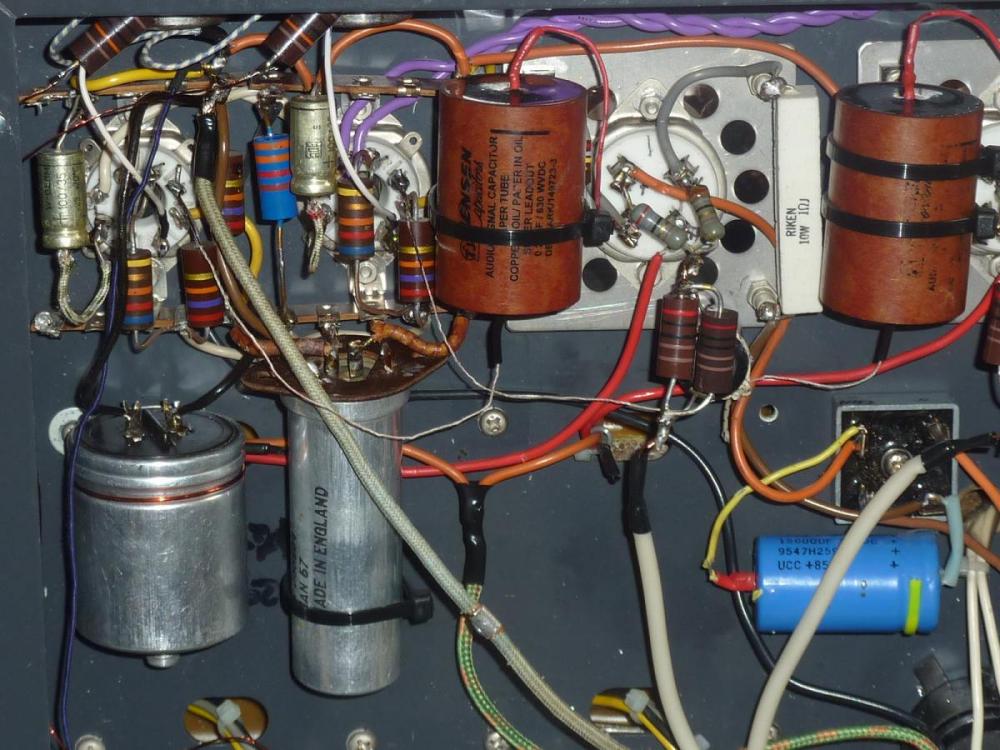 После апгрейда . Теперь в переходе к 300В стоят медные Дженсен в рареr стаканах . Выводы их заменил на силвер Кондо и литц .Телефункен . В цепях питания появился бумагомасл. Bosch MP 8mf , Riken Om резистор , в накале 300В - танталовые резисторы и Блек Гейт 100мкфх 100в .