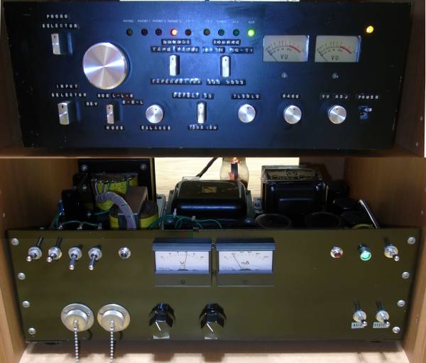 По фотографии трудно понять ,что это на самом деле . Похоже с опцией дополнительных блоков питания . Вообще ,похоже,это типичный уровень винтажа 60-х ,когда все делали на удивление единообразно : один ,два типа резисторов ,многожила в разводке ,электролиты - везде в питании . Скажу откровенно : ещё ни один усилитель или предусилитель от винтажа меня не удивил той ясностью изыска ,которую может дать принципиально другой критерий: критерий авторского построения ,сподвижником которого я и являюсь . Сдесь - простые схемы , сложная интрига подбора гармоничной комплектации (винтажной в том числе) ,отказ от вредных для музыки и структуры звука -избыточных тумблеров ,контактов , тугих связок проводов -без разбора и направления ,отказ от стиля "милитари" -когда все детали закрепленны намертво , всё заневолено ,в колпаках ,в пропитках и прочее ; будто для танков собирали или ещё от 2 мировой не очухались. Если у авторского аудиопостроения есть шанс стать шедевром и произведением искусства ( смотря кто создавал) , то винтаж в своей доминанте - это (имхо) рутина мирового производства . Прошу прощения,что слегка ушёл от ответа.