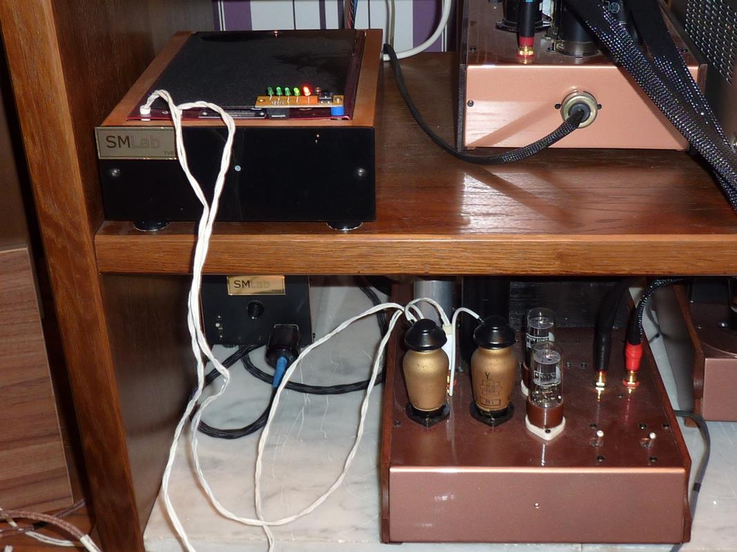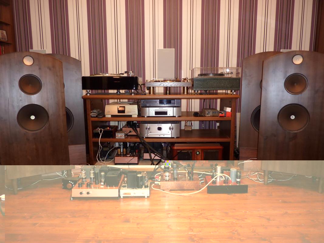 RX -корректор Сергея Банковского , основной усилитель , предусилитель на лампах EF14 , EL11 Telef . , выходными трансформаторами Аудионот 33:1 и топовыми РГ Кооn (TKD) .