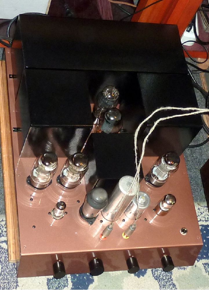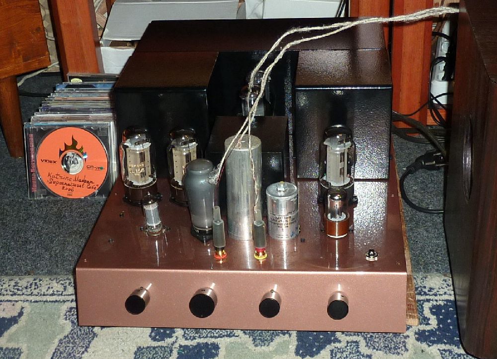 В каждом моноблоке представлены полностью независимые каналы усиления , всего два , где один на сдвоенных немецких пентодах EL156 ( 20 вт на канал) обеспечивает работу НЧ- звена АС , которые могут быть представлены весьма непростыми динамиками -15" , 18" , 21" .... , и поэтому сдвоенным пентодам , способным обеспечить недецкий ток в нагрузке , альтернативы в мире S.E. , похоже нет .