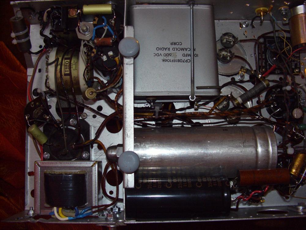 3. Тип применяемого блока питания : Благодаря чудному "бронеколпаку" с прежнего RX- корректора и применению вполне прилично экранированному силовому трансформатору Танго -РН100 S , проблем с фоном с ОППВ выпрямителем не возникло , но вакуумные конденсаторы (в подвале шасси) по любому пришлось загнать в медный экран .
