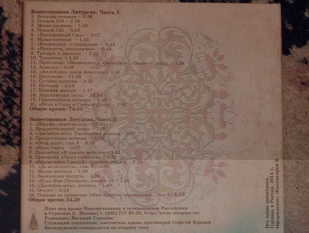 Хочу познакомить с двумя образцами храмовых песнопений . Обе -записи Божественной Литургии ,что является апофеозом духовного песнопения . В храме Христа Спасителя в Москве ,с участием покойного Святейшего патриарха Всея Руси Алексия, и вторая запись - литургия знаменным роспевом в Строгино в храме новомучеников и исповедников Российских. В кожаном длинном плаще - незабвенный Даниил Григорьев.