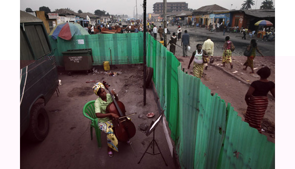 Первое место в номинации «Искусства и развлечения» – снимок Эндрю Макконелла, на котором жительница Конго играет на виолончели во дворе своего дома.