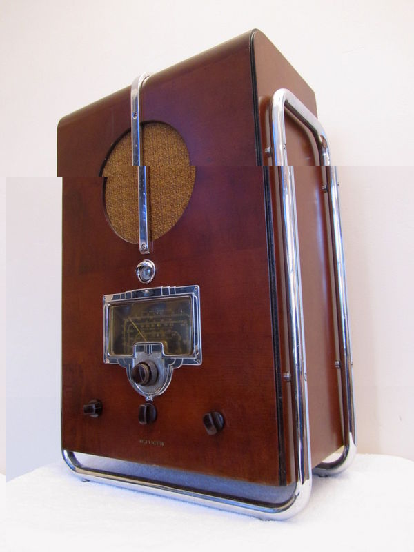 VINTAGE 1930s JOHN VASSOS RCA VICTOR CHROME TRIM ART DECO 40 POUND TABLE RADIO.