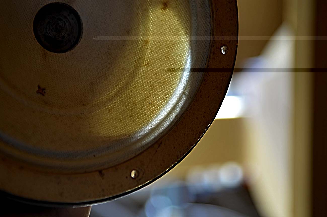 Ну и на просвет видно, как красив диффузор! Кроме того, верхний подвес истончен по впадине от волны, так что движение его ничем не связано. Потому и катушка там имеет всего 3.6 Ом активного сопротивления. Более чем деликатно.
