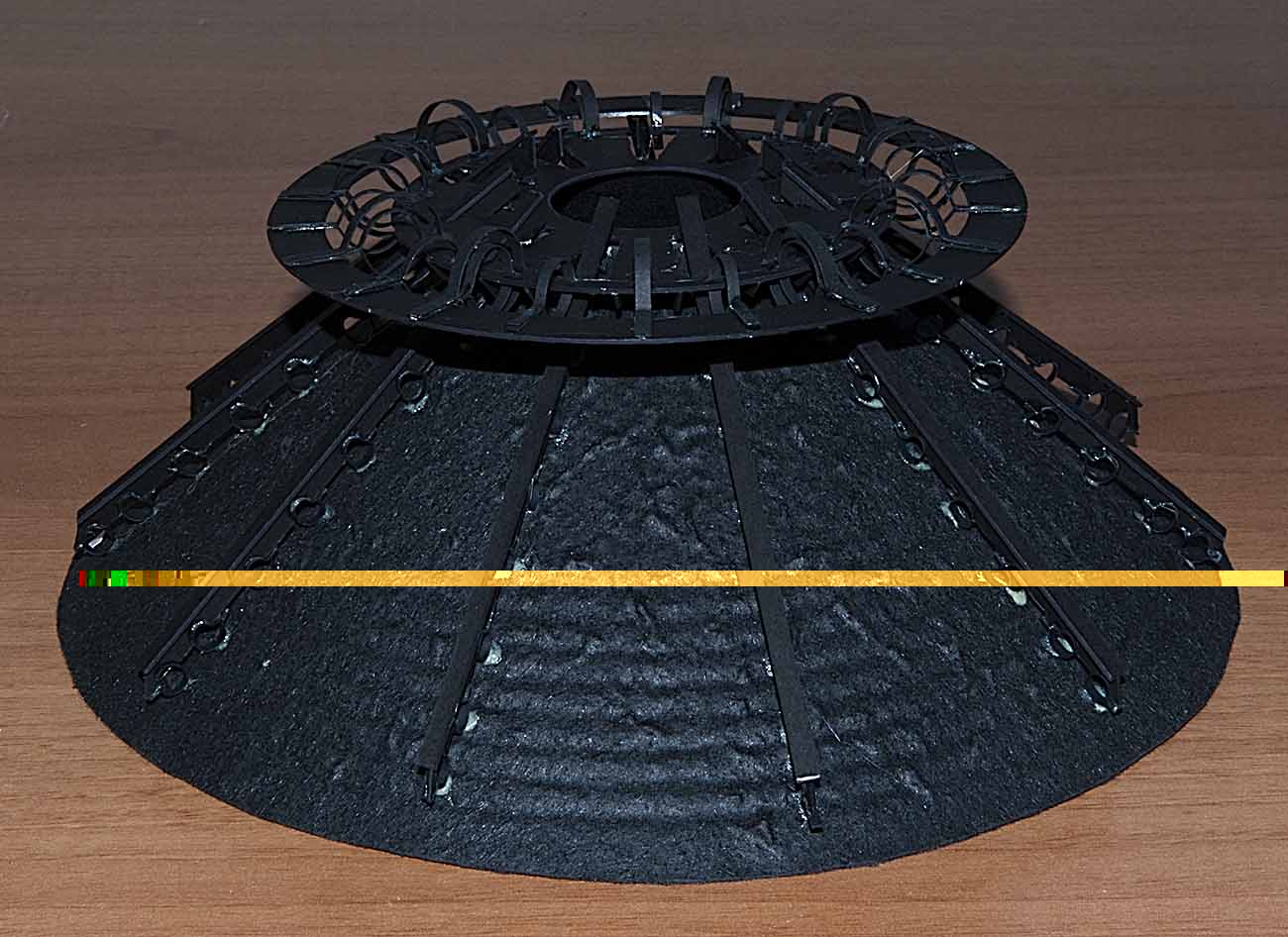 Убрал волны верхнего подвеса и вместо них приклеил жесткий, заглушенный ребрами жесткости обод. Пока все это еще без петелек.