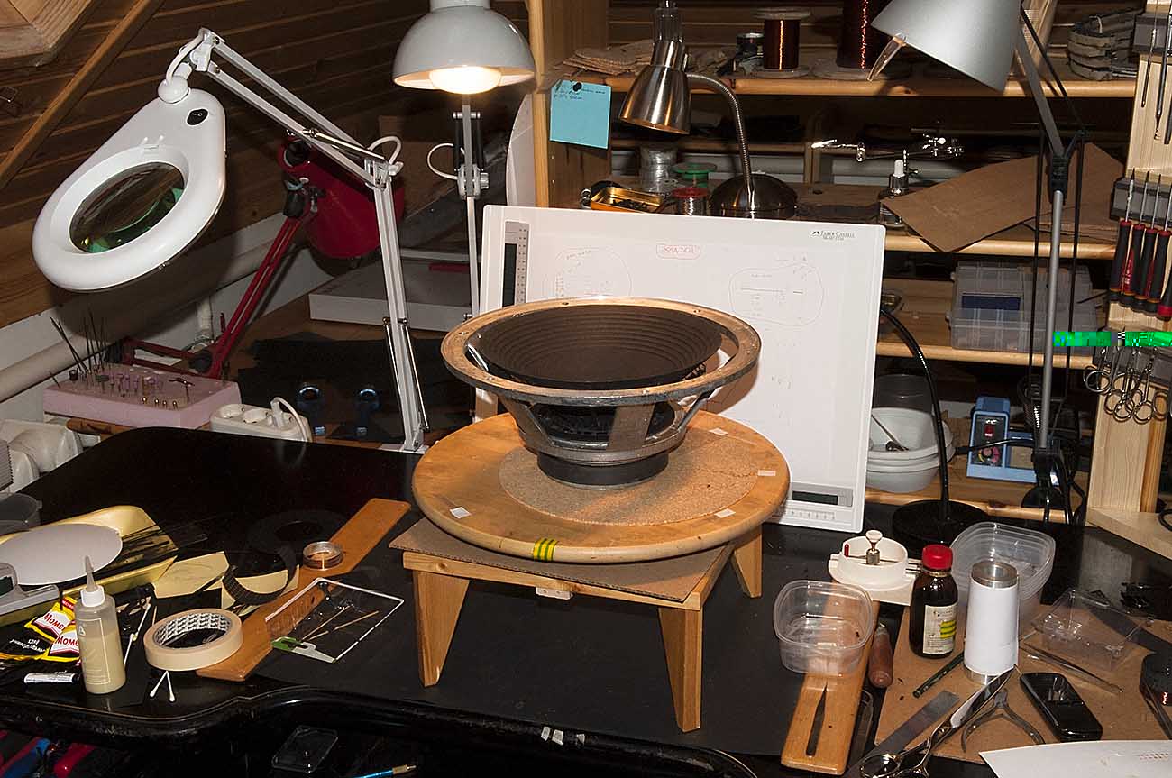 Я решил расположить радиально по периметру диффузора 11 "укосин", приклеив их к диффузору с одной стороны и вклеив в катушку с другой. Таким образом, по замыслу, звук будет попадать на площадь диффузора не столь акцентировано.
