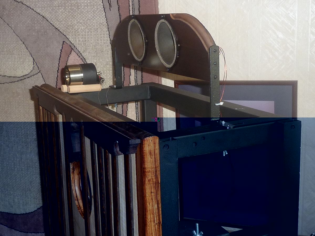 Основную середину и всю её живость обеспечивает ШП 10" Телефункен на подмагничивании , включенный напрямую без каких либо кроссоверов . Весь ВЧ диапазон обслуживают твиттеры 3 уровней : нижнии ВЧ ( 5" твиттер на подмагничивании М. Уракова , средний ВЧ ( до 16000гц) - Сименсы 4" VAC и верхний ВЧ с ультра ВЧ - хорн твиттер FOSTEX T90A ( до 35.000гц. ) .