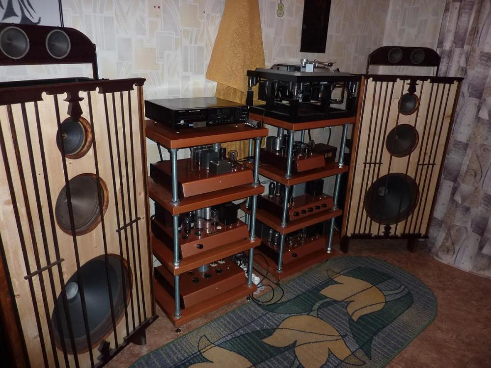 Основная темв : 18" Биг Босс работает от отдельного НЧ - однотактного усилителя на сдвоенных ЕL12 spez , а мид НЧ и СЧ , ВЧ - от своего усилителя - на АL5 Tel. БИАМПИНГОВАЯ концепция , как наиболее гибкая и верная , если надо получить приемлемые конфигурации настроек самой системы.