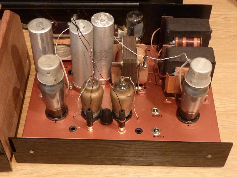 Один из моих ОППВ БП подмагничивания - для пары 10" ШП Телефункен ( 120в х62ма -каждый дин. ) -в паре - оптим. 200в , пары 8" ШП Тел. и пары 4" ВЧ -тоже Телефункен ( в итоге - всего 3 кенотрона и два трансформатора . Корпус -шасси : старинное дерево от приемника.