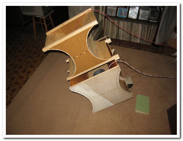 Вот как это выглядит.Два двойных рупора друг над другом,двойная Орта Носова,два ШП динамика "морда к морде".Такая установка динамиков(на встречу друг другу) все же успокаивает звучание,мидбас значительно подсушивается,перестает быть гудящим и сильно бумкающим(это все пока на слух,ушами).Но эта конструкция страшно чувствительная.Внесекние небольших изменений может приводить к довольно заметному изменению в звучании.Надо подольше послушать на разной музыке.Ну и снять АЧХ конечно.