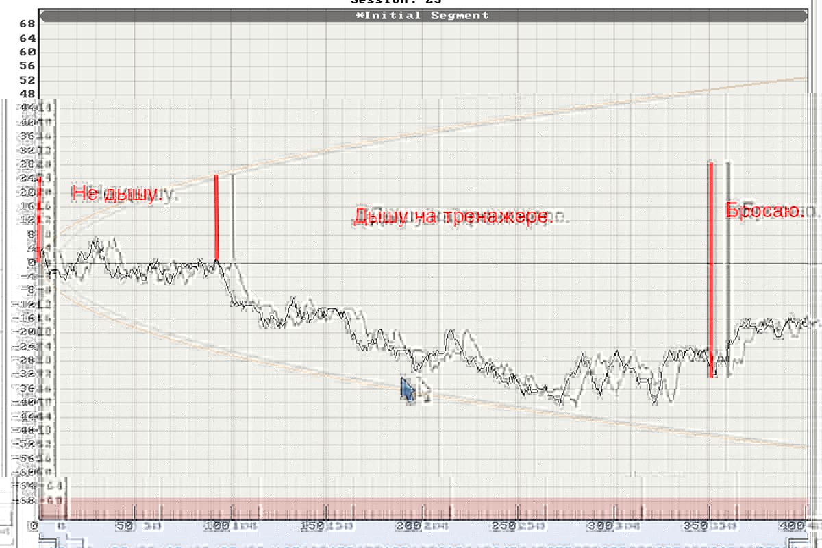 Три стадии, не дышу, дышу, бросаю дышать через прибор.