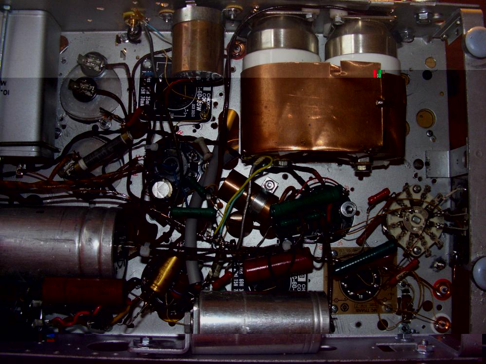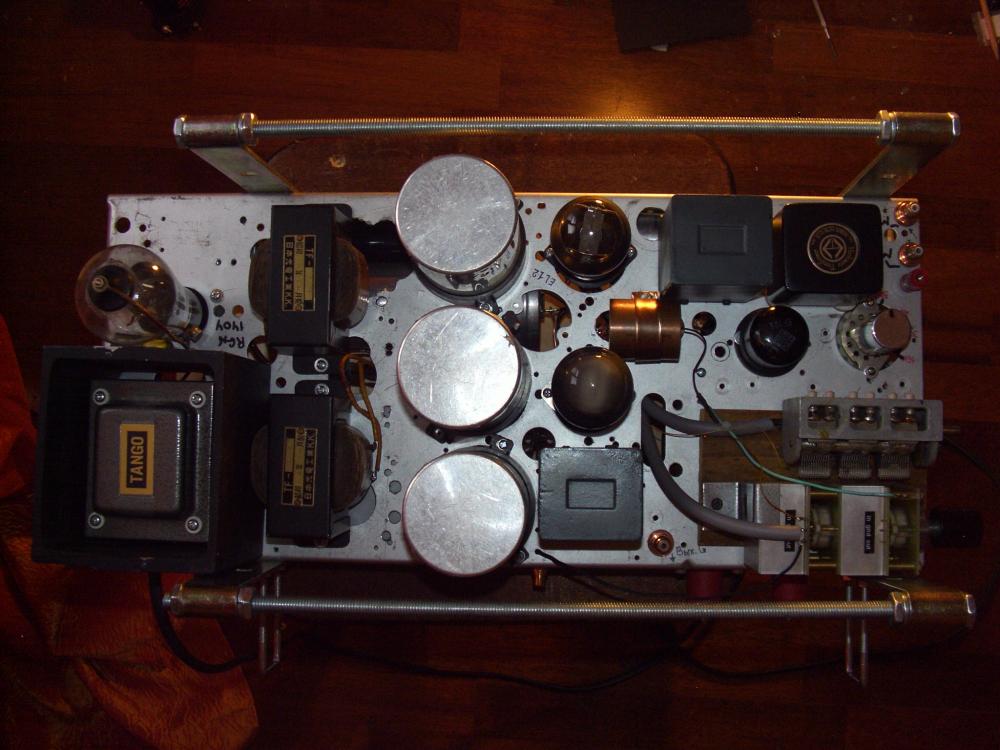 3. Тип применяемого блока питания : Благодаря чудному "бронеколпаку" с прежнего RX- корректора и применению вполне прилично экранированному силовому трансформатору Танго -РН100 S , проблем с фоном с ОППВ выпрямителем не возникло , но вакуумные конденсаторы (в подвале шасси) по любому пришлось загнать в медный экран .