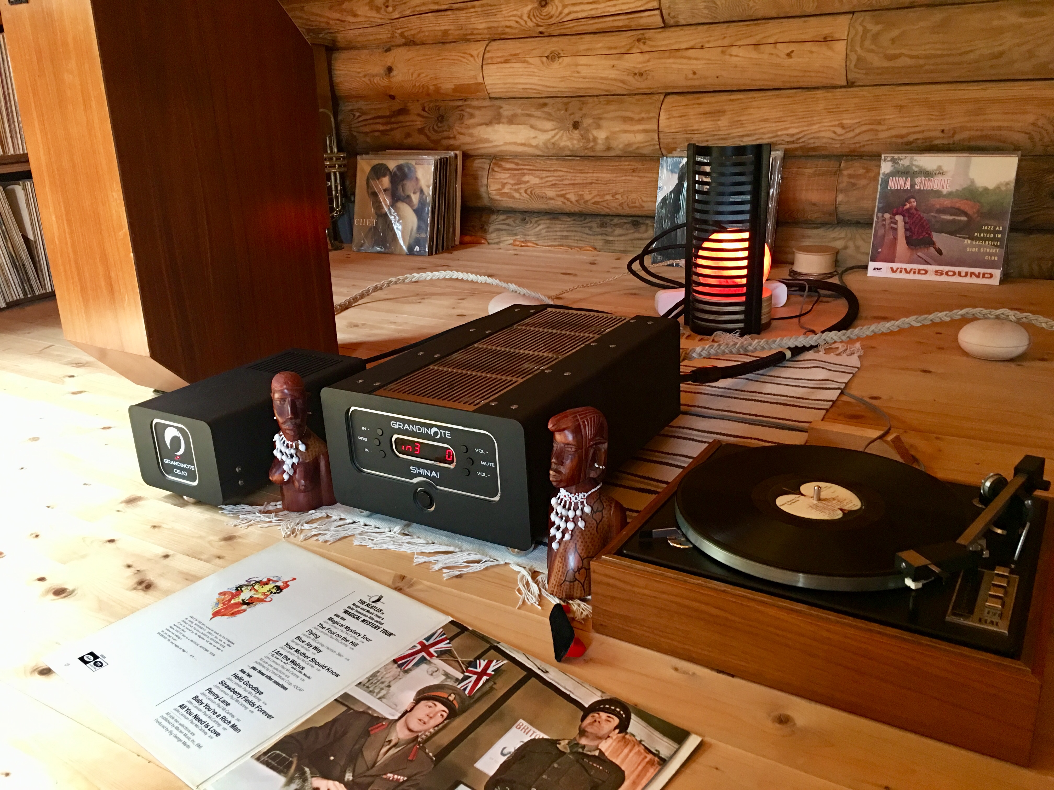 И вот Grandinote у меня на мансарде. Фонокорректор Celio и усилитель мощности Shinai.