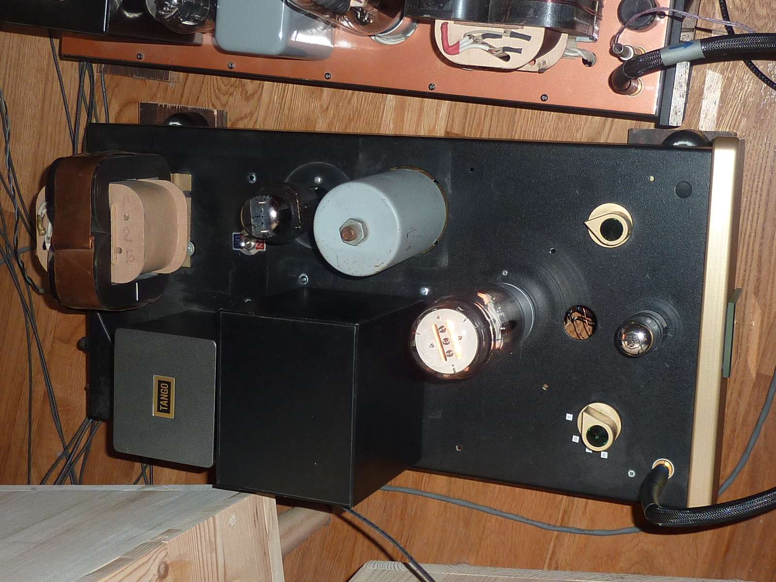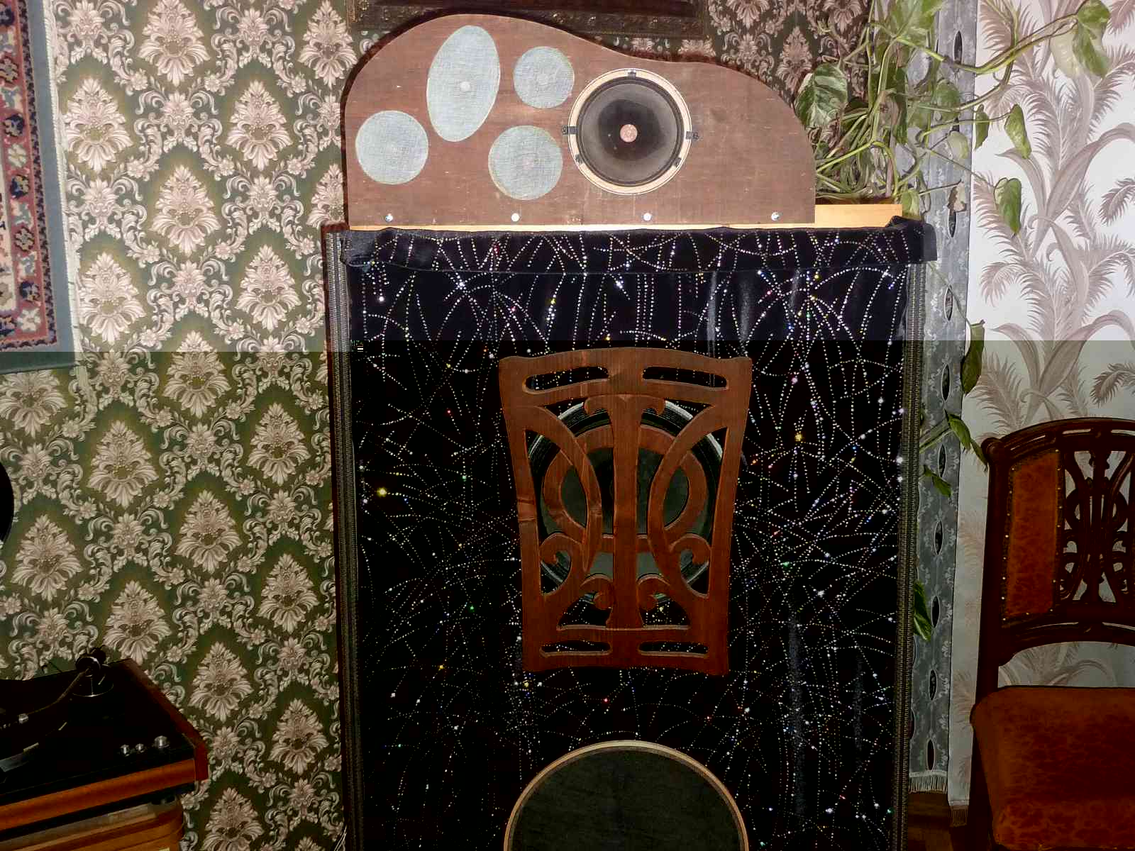 ГЗМ008 и тонармом , где прежняя проводка была заменена на довоен. литц. от Телефункен . Все аудиокомпаненты установлены на полках из дерева ,жёстко прикреплённых к капитальной стене старинного дома , где всё большое и просторное
